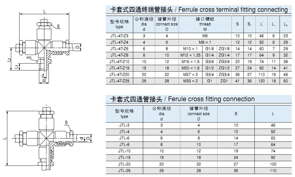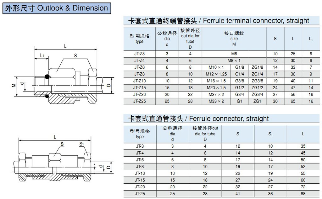 卡套式管接頭 JT 系列,可非標(biāo)來樣定做