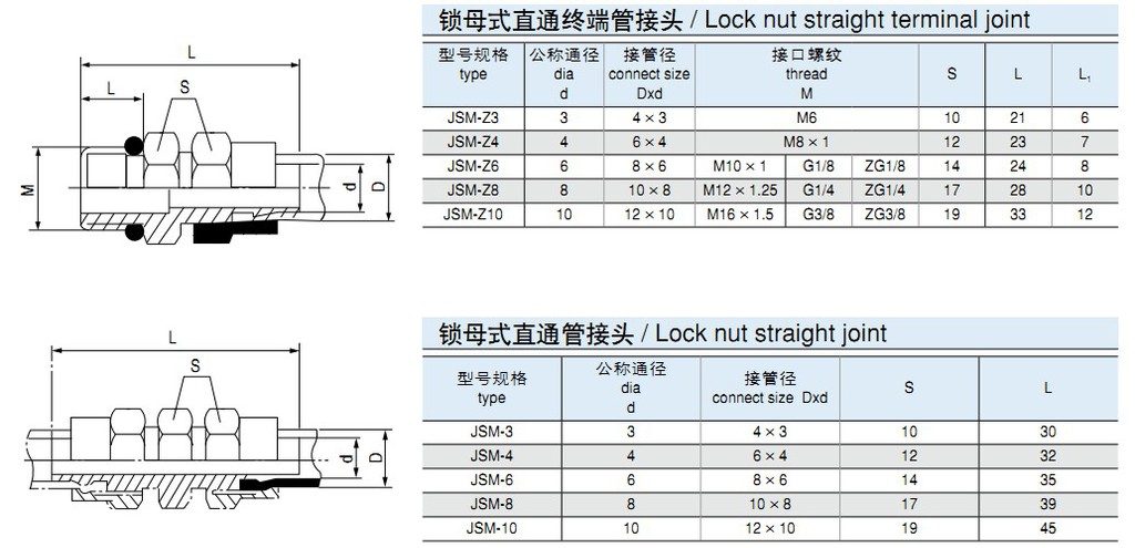 鎖母式管接頭 JSM系列,可非標(biāo)來樣定做