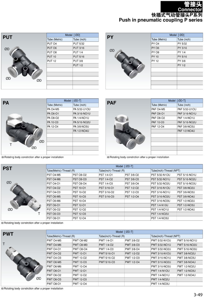 華通氣動(dòng)牌 快插式 氣動(dòng)接頭 P系列,可非標(biāo)來(lái)樣定做