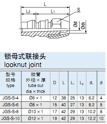 安裝及應(yīng)用最大工作壓力:3.5MPa.工作溫度:-10℃~+100℃型號(hào)規(guī)格說明,下圖例JGS-W-6A(JGS-K-6B)插入式外螺紋接口。高性能快速接頭,外插式內(nèi)螺紋接口。外形尺寸