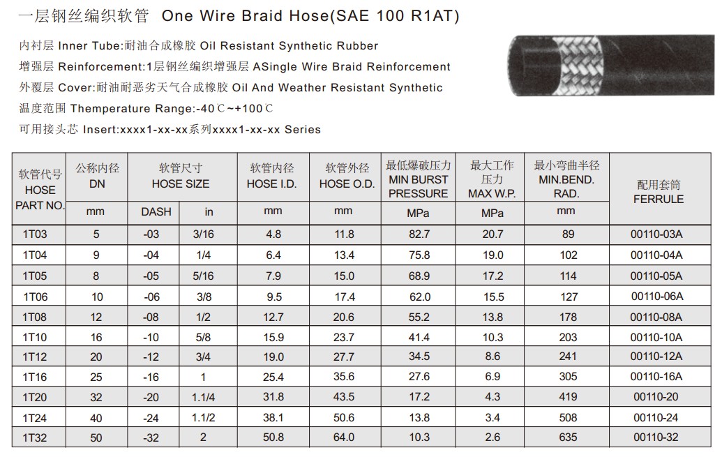 SAE 100 R1AT 一層鋼絲編織軟管