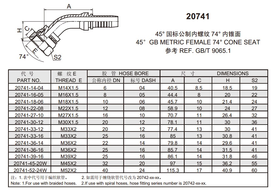 20741 45°國(guó)標(biāo)公制內(nèi)螺紋74°內(nèi)錐面 扣壓式軟管接頭