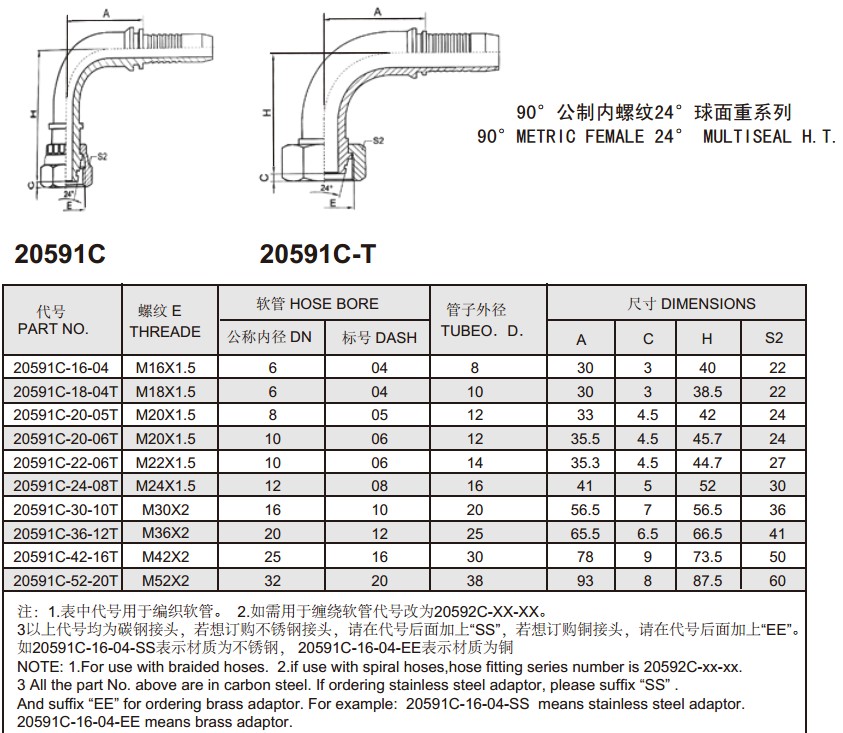 20591C 90°公制內(nèi)螺紋24°球面重系列