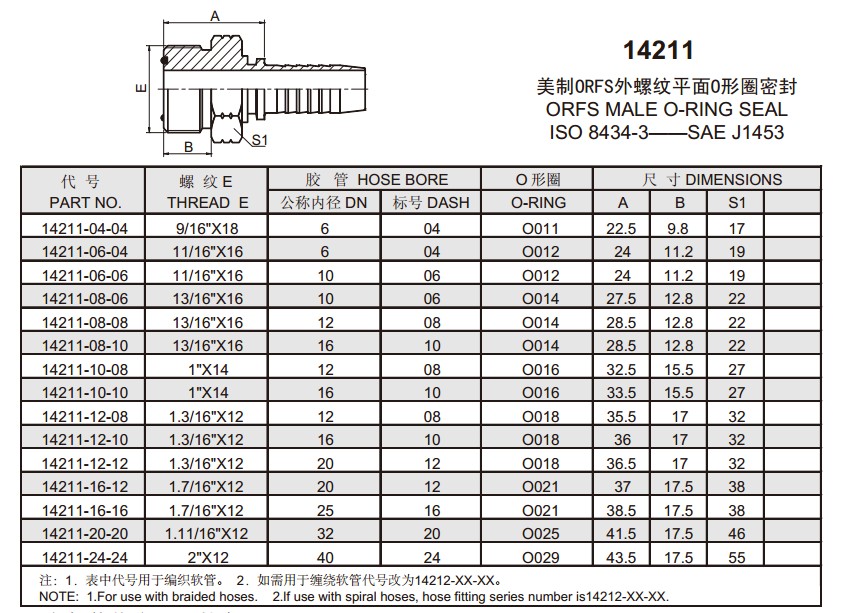 14211 美制ORFS外螺紋平面O形圈密封