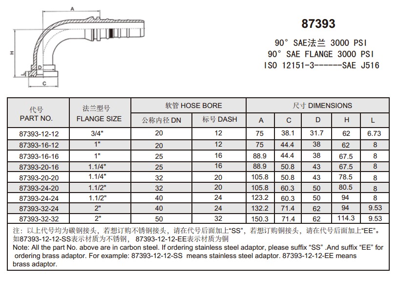 87393 90°SAE法蘭 3000 PSI