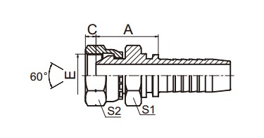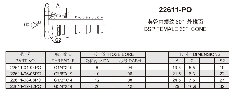 22611-PO 英管內螺紋60°外錐面雙六角