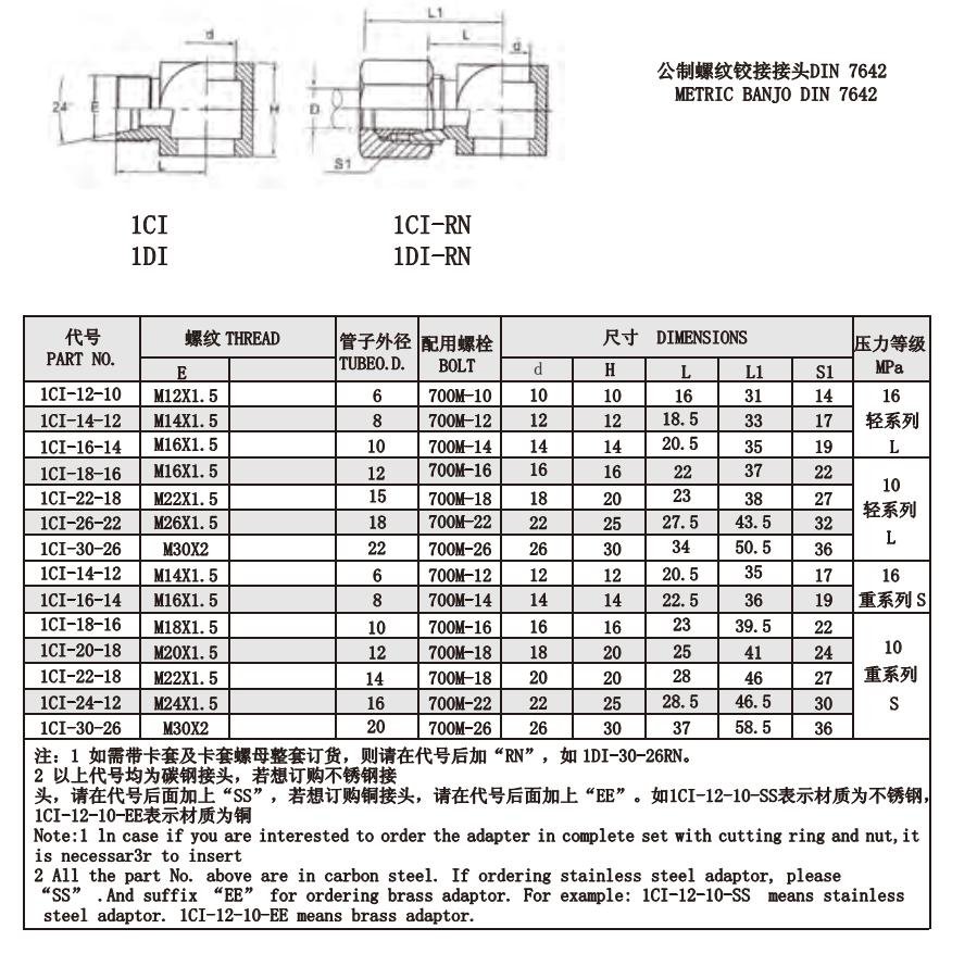 1CI 1DI 公制螺紋鉸接接頭DIN 7642