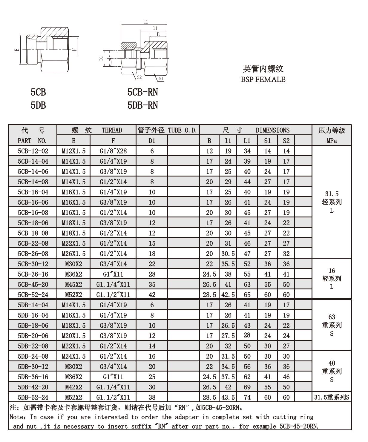5CB 5DB 英管內(nèi)螺紋