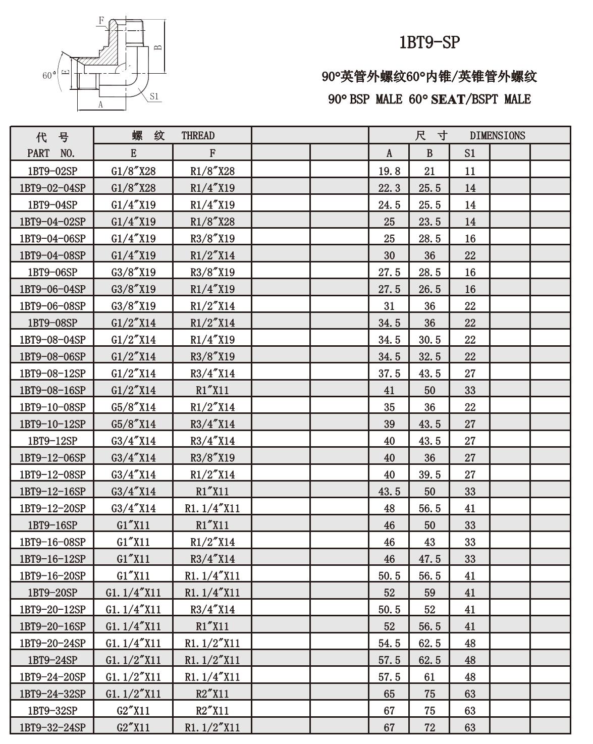 1BT9-SP 90°英管外螺紋60°內(nèi)錐/英錐管外螺紋