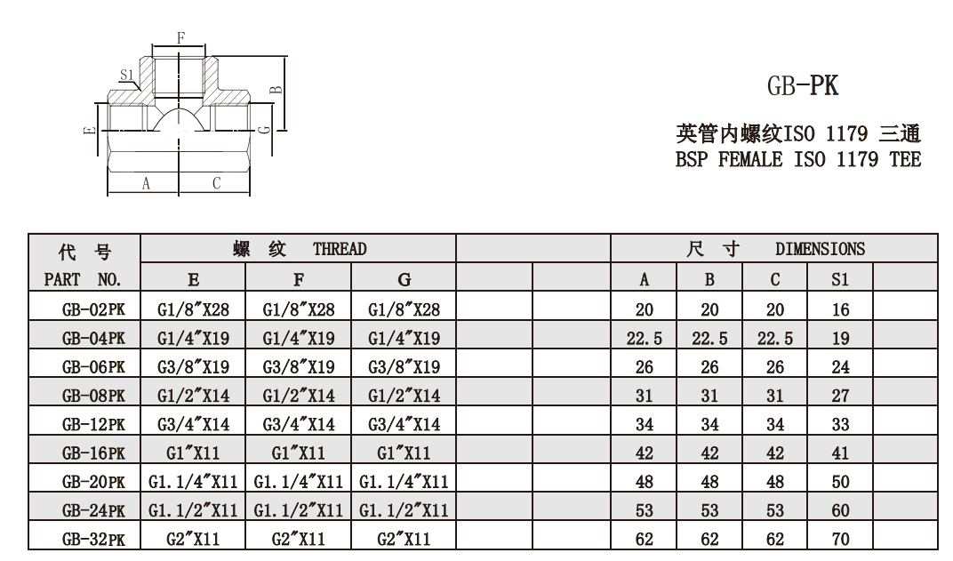 GB-PK 英管內(nèi)螺紋ISO 1179 三通