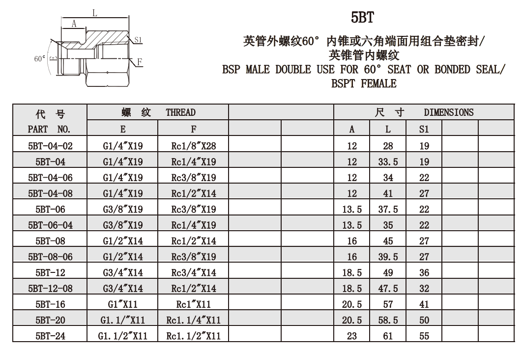 5BT 英管外螺紋60°內(nèi)錐或六角端面用組合墊密封/ 英錐管內(nèi)螺紋