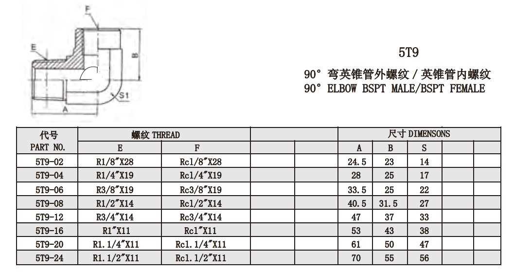 5T9 90°彎英錐管外螺紋/英錐管內(nèi)螺紋