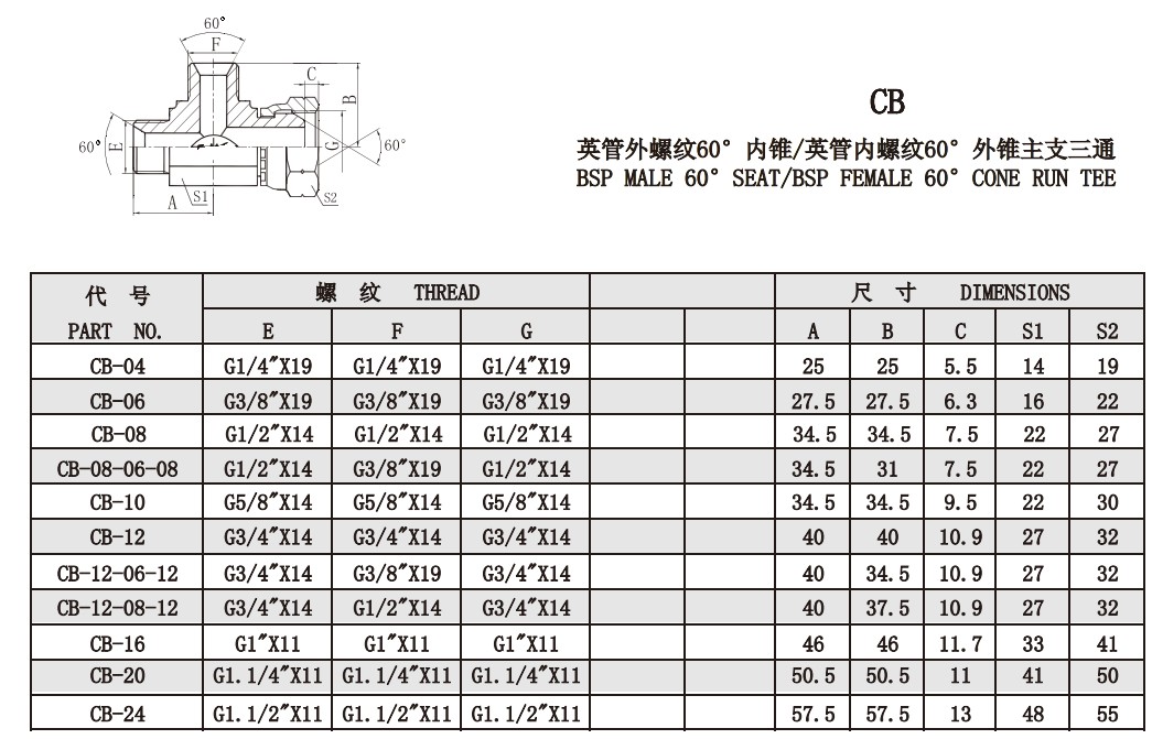 CB 英管外螺紋60°內錐/英管內螺紋60°外錐主支三通