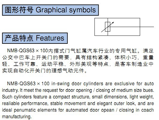 技術參數(shù) Specification項目Item 參數(shù) Specification缸徑 Dia 63工作介質 / Working medium: 干燥潔凈含油霧的壓縮空氣Dry and