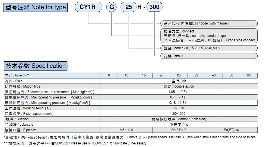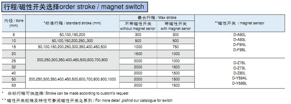 *當(dāng)磁性開關(guān)不是安裝在行程之兩端時(shí)(在中間位置).最高活塞速度為300mm/s以下 / piston speed less than 300m/s when stroke not on both end side of stroke