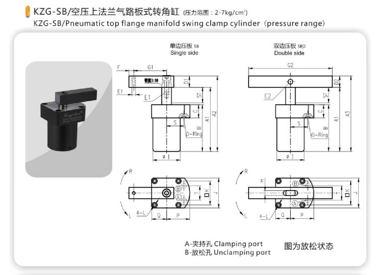 KZG-SB/空壓上法蘭氣路板式轉(zhuǎn)角缸