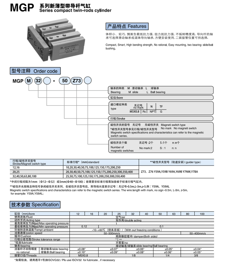 新薄型帶導(dǎo)桿氣缸 MGP系列,可非標(biāo)定制氣缸來(lái)圖來(lái)樣訂做