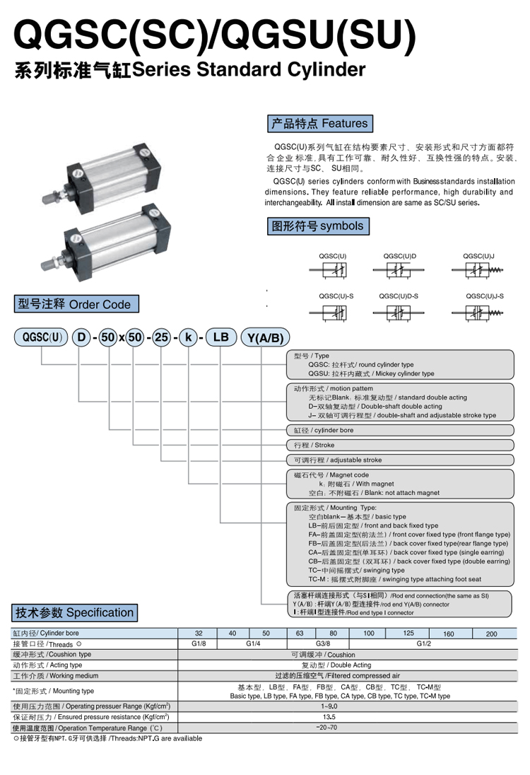 華通氣動 輕型氣缸 QGSCU系列,可非標(biāo)定制氣缸來圖來樣訂做