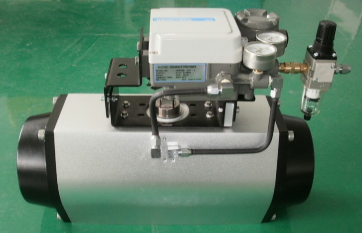 該氣動(dòng)執(zhí)行機(jī)構(gòu)由角行程氣缸本體、智能型定位器、位置反饋器、保位閥、過(guò)濾調(diào)壓閥、平衡閥等組成。具有三斷保護(hù)作用(斷電、斷信號(hào)、斷氣時(shí),自動(dòng)保位或指定位置),還能另配手操系統(tǒng),根據(jù)控制需要可選:開(kāi)關(guān)型和調(diào)節(jié)型以及單作用和雙作用氣動(dòng)執(zhí)行機(jī)構(gòu)。