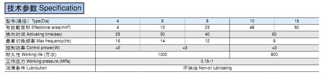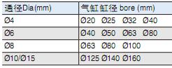 全系列共分四種規(guī)格,通徑分別Ø4, Ø6, Ø8, Ø10,適應(yīng)配套氣缸缸徑如下:
