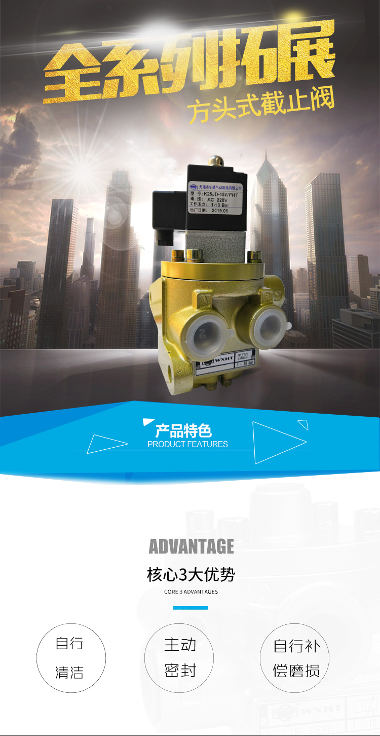 管接截止式換向電磁閥K25JD-WF系列二位五通,可提供定制方頭無(wú)錫閥單聯(lián)閥